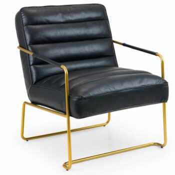 Upholstered in a brown soft faux leather fabric with a black powder coated metal base, the Bowery Swivel Chair offers a modern, industrial styling that will enhance any modern living area with an industrial touch, featuring a 360-degree swivel function. This chair excels in comfort with a sumptuous amount of padding, with an additional back pillow allowing you to relax all day.