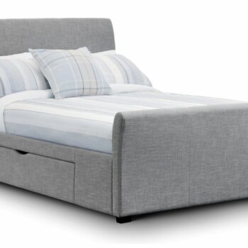 Featuring a gorgeous, curved headboard, the Frida bed exudes elegance and comfort. The black contrasting legs paired with the smooth velvet gives a modern look – and is likely to be the statement piece in any bedroom. It is also available in an ottoman version, perfect for those with smaller bedroom areas as it provides that extra storage space. Available in two beautiful shades of teal and grey.